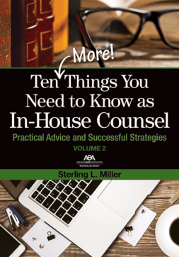 Ten (More) Things You Need to Know as In-House Counsel – Practical Advice and Successful Strategies Volume 2 is out. It’s my second book based on this blog series. As the ABA says, “All in-house lawyers need to own this book!” The ABA is smart. Click here to buy it.